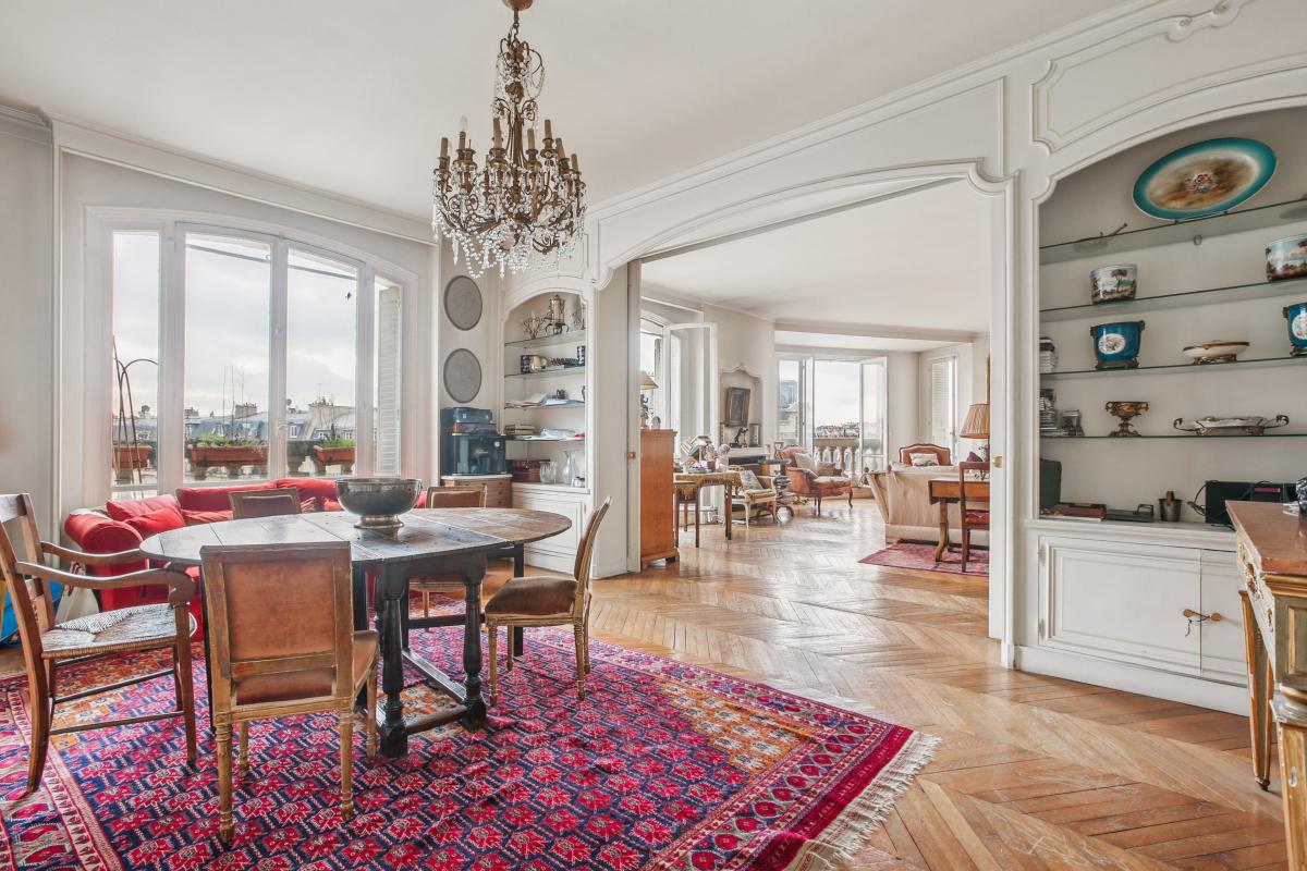 Exclusivité OCDE, entre les jardins du Ranelagh et l'Avenue Henri Martin, aux deux derniers étages d'un immeuble ancien de standing avec gardien, un appartement d'exception en duplex d'une surface loi Carrez de 296,11 m² et ses balcons ensoleillés. Ce bien au calme absolu et aux agréables volumes se compose de : une galerie d'entrée, un vaste séjour double sur rue aux vues dégagées, une cuisine séparée, trois chambres dont deux en suite avec salle d'eau et salle de bains, un dressing, deux toilettes. Par un escalier intérieur, l'étage offre une pièce de vie baignée de lumière style atelier d'artiste avec ses larges fenêtres, une cuisine et deux chambres dont une en mezzanine, un balcon/terrasse de 6,21 m², une salle d'eau, toilettes.
