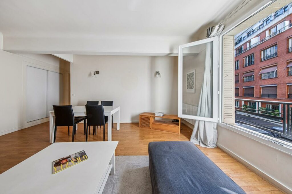 Ranelagh, dans une rue privée et sécurisée à proximité des jardins du Ranelagh, de la Muette et des commerces de l'avenue Mozart, un appartement ensoleillé d'une surface de 72,86 m² loi Carrez. Ce bien lumineux est situé au premier étage avec ascenseur d'un immeuble années 50 en Pierre de Taille, il se compose de : une entrée, un beau séjour sur rue arborée avec une cuisine attenante, deux chambres dont une avec un dressing, une salle de bains avec WC (possibilité d'une seconde salle d'eau dans le dressing).