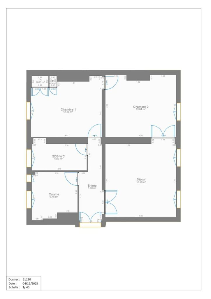 - Surface : 60.59m²