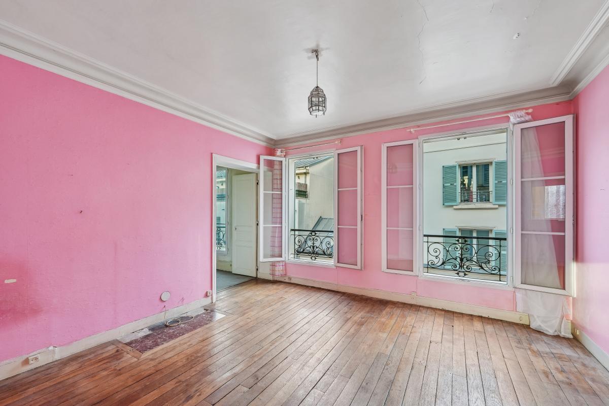 Au cœur des Batignolles, dans un immeuble d'angle XIXème doté d'une large cour pavée arborée et de parties communes lumineuses, au troisième étage par un bel escalier, un appartement traversant ensoleillé de 59,73m² Loi Carrez. Ce bien au plan en étoile se compose de : une entrée distribuant un séjour sur rue, une cuisine sur cour aux vues dégagées, deux belles chambres sur cour et sur rue et une salle de bains avec toilettes sur cour. Cet appartement baigné de soleil offre des vues très dégagées coté cour plein sud ouest permettant un bel ensoleillement toute la journée. Il offre un très beau potentiel après rénovation.