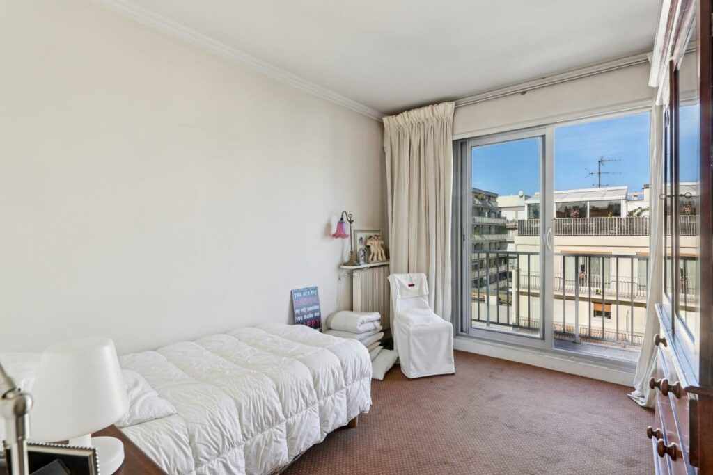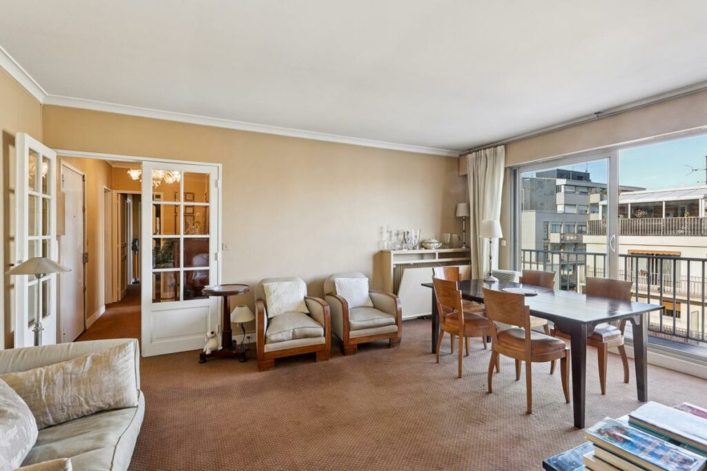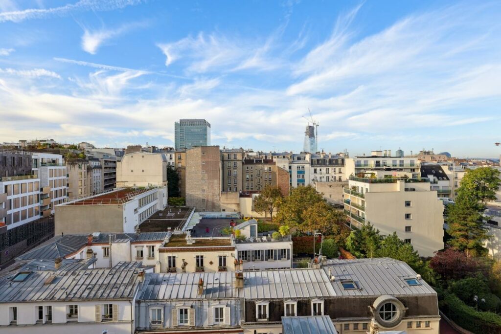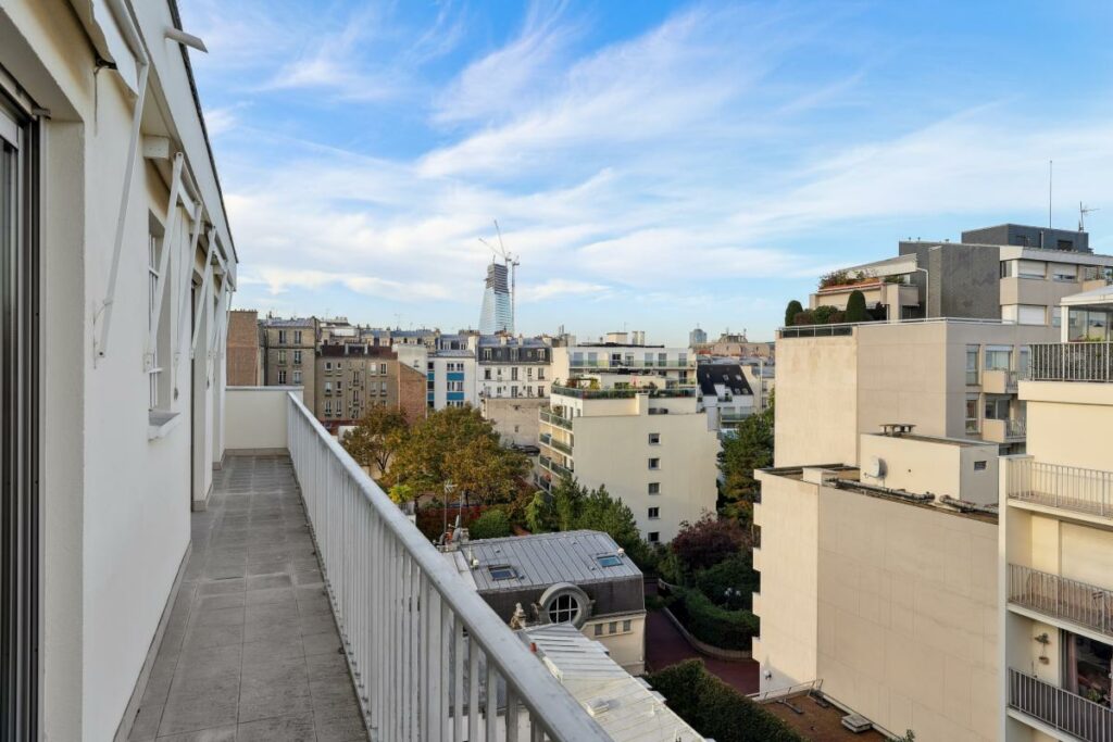 Exclusivité Convention. Au septième et dernier étage en ascenseur d'un bel immeuble moderne, un appartement d'une surface de 75,01 m² sans vis-à-vis. Cet appartement lumineux exposé Ouest se compose de : une entrée, un séjour ouvrant sur un balcon filant vue Tour Eiffel, une cuisine séparée, deux chambres, une salle de bains, toilettes, dressing.