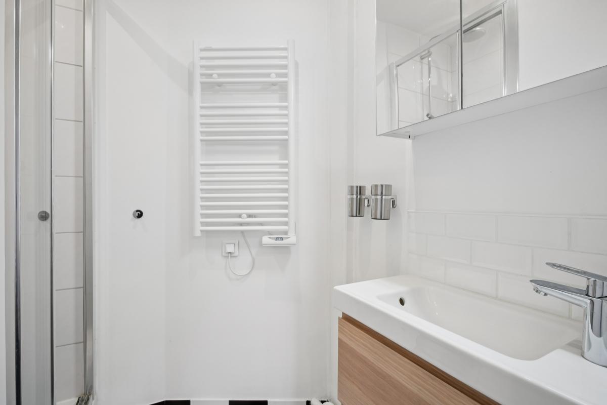 Ce bien lumineux vendu meublé se compose de : une cuisine équipée avec espace dinatoire et bureau, un séjour/chambre avec placard et une salle d'eau. WC commun immédiatement sur le palier.