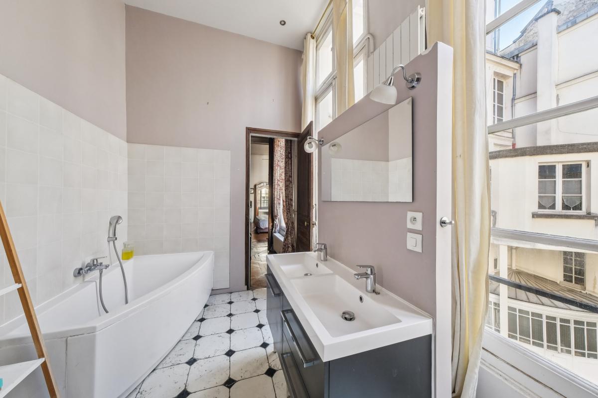 Ce bien aux volumes d'exception, avec une hauteur sous plafond de 4m, se compose de : une entrée, une salle à manger et un vaste salon sur rue, une cuisine séparée avec pièce attenante à l'entresol, une chambre avec salle d'eau sur rue, une chambre sur cour et une suite avec dressing et salle de bains au calme absolu, toilettes indépendants.
